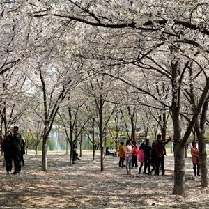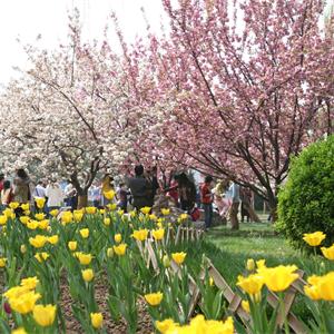 樱缤之路:1994年从樱花园移栽的6株关山和普贤象,因该区域小环境优越,长势旺盛。阳春4月,她们在朝辉和夕阳里倚墙怒放,形成了公园东部灿烂一景。近年来这里又陆续补植了松月、染井吉野等品种,使得赏樱时间提前到了3月下旬。 详情>>